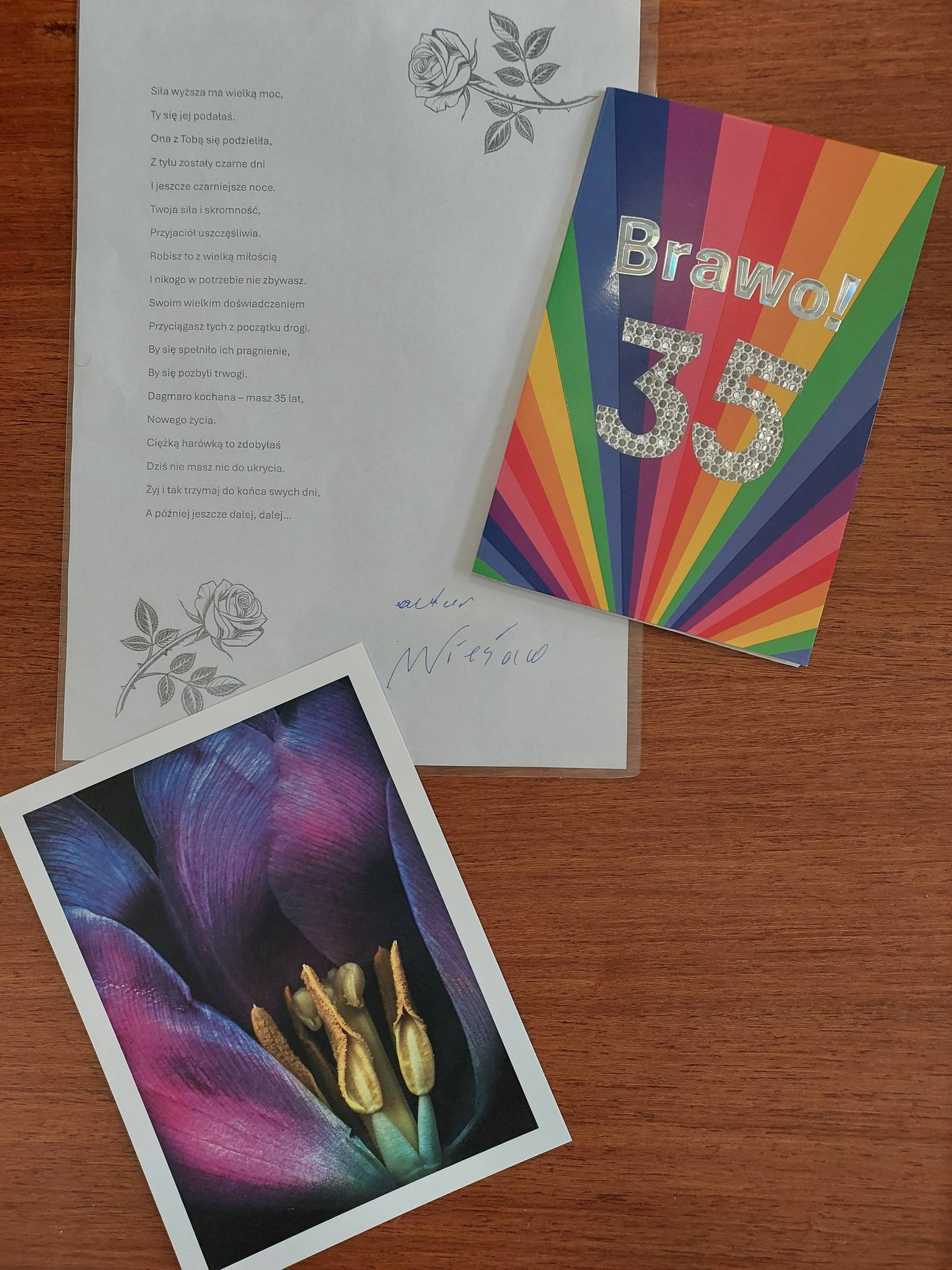 To wszystko za mało, zbyt powierzchownie, bo przy takich właśnie okazjach uczucia nie mieszczą się w człowieku i szukają ujścia, stąd i łezka się zakręci w oku, i dech w piersiach zapiera. Z tego też powodu nie będzie dziś zdjęć klubowiczów, a tylko okolicznościowe kartki, które wręczyliśmy Dagmarze z okazji Jej 35. rocznicy. Robi wrażenie, oj, tak! Serdeczne gratulacje!